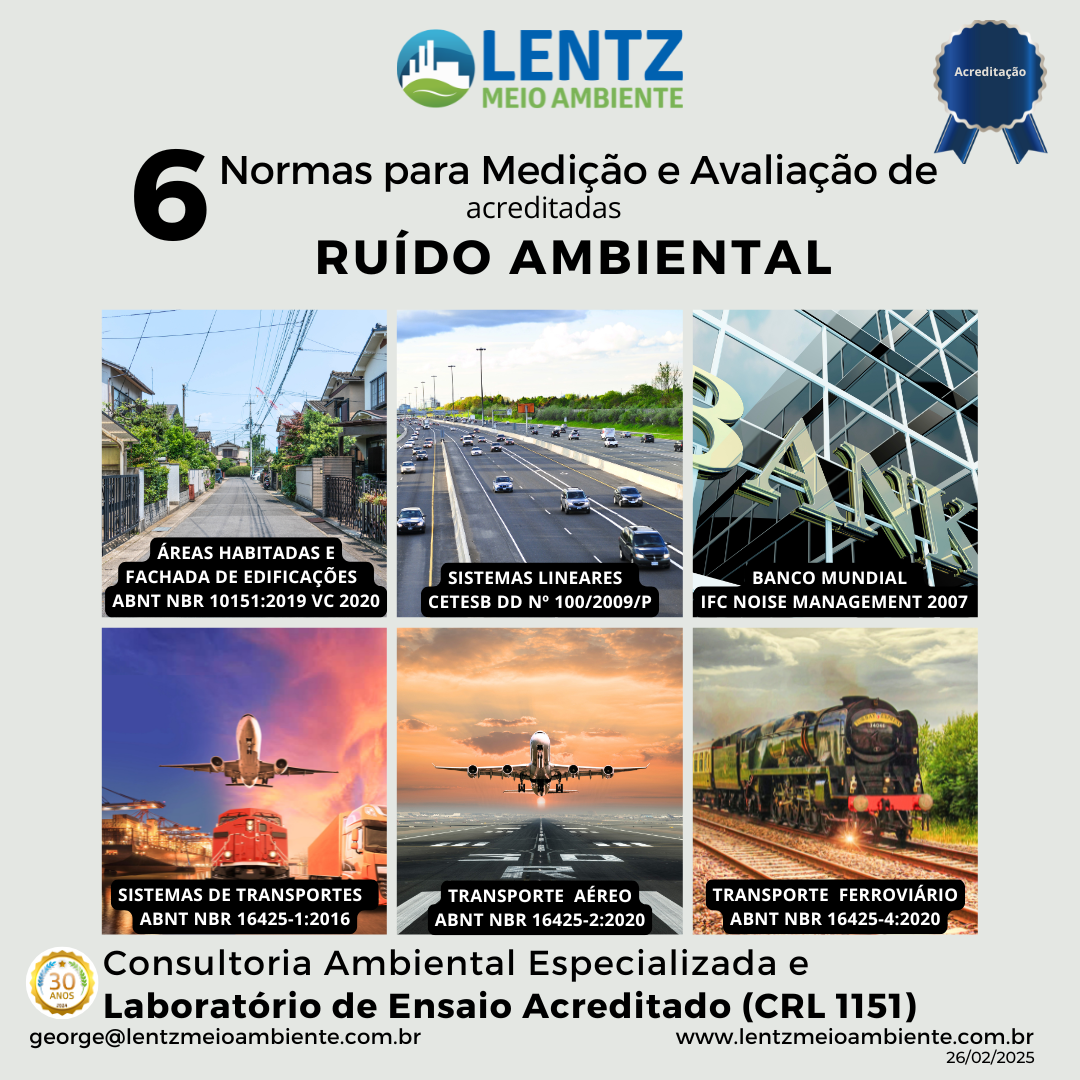 🎯 Precisão e Confiabilidade na Medição de RUÍDO AMBIENTAL: LENTZ Laboratório Acreditado 🔬🌿 Você sabia? O Laboratório Lentz Meio Ambiente é acreditado pela Ccgre/ Inmetro para medição e avaliação de ruído ambiental (pressão sonora) em conformidade com 6 normas nacionais e internacionais. Nossos ensaios são reconhecidos por revisores do Banco Mundial e do BID, garantindo precisão, confiabilidade e conformidade com os mais altos padrões técnicos. ✅ Saiba quais são as 6 Normas