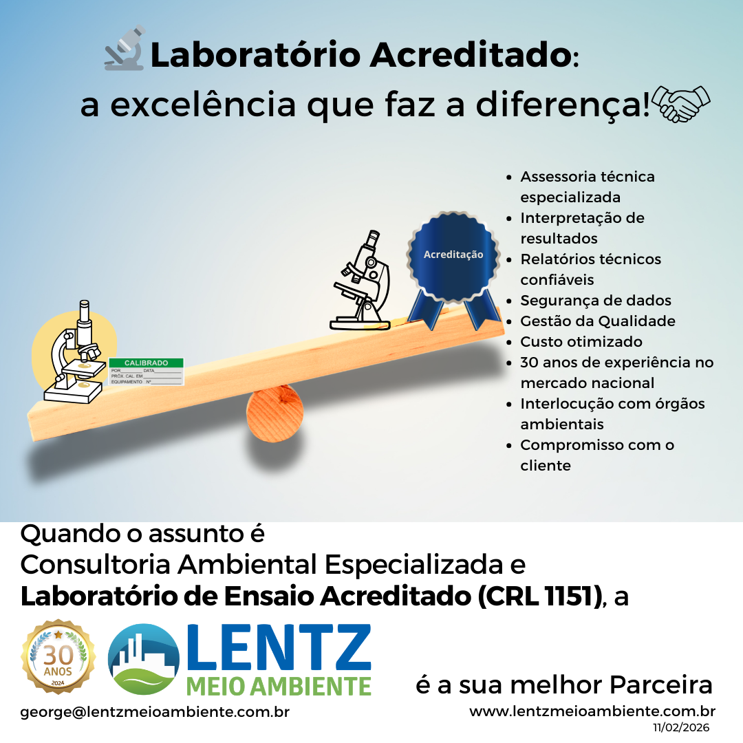 🌿 Onde Fazemos a Diferença: excelência técnica com visão de futuro! Com 30 anos de experiência e presença nacional, a Lentz Meio Ambiente une expertise em Consultoria Ambiental Especializada e um 🔬 Laboratório de Ensaio Acreditado pelo Cgcre/Inmetro (CRL 1151), que é referência em qualidade e confiabilidade. A saber, o Laboratório LENTZ é acreditado pela Cgcre/Inmetro há 8 anos (CRL 1151), segundo os requisitos da norma ABNT NBR ISO/IEC 17025:2017. O escopo da